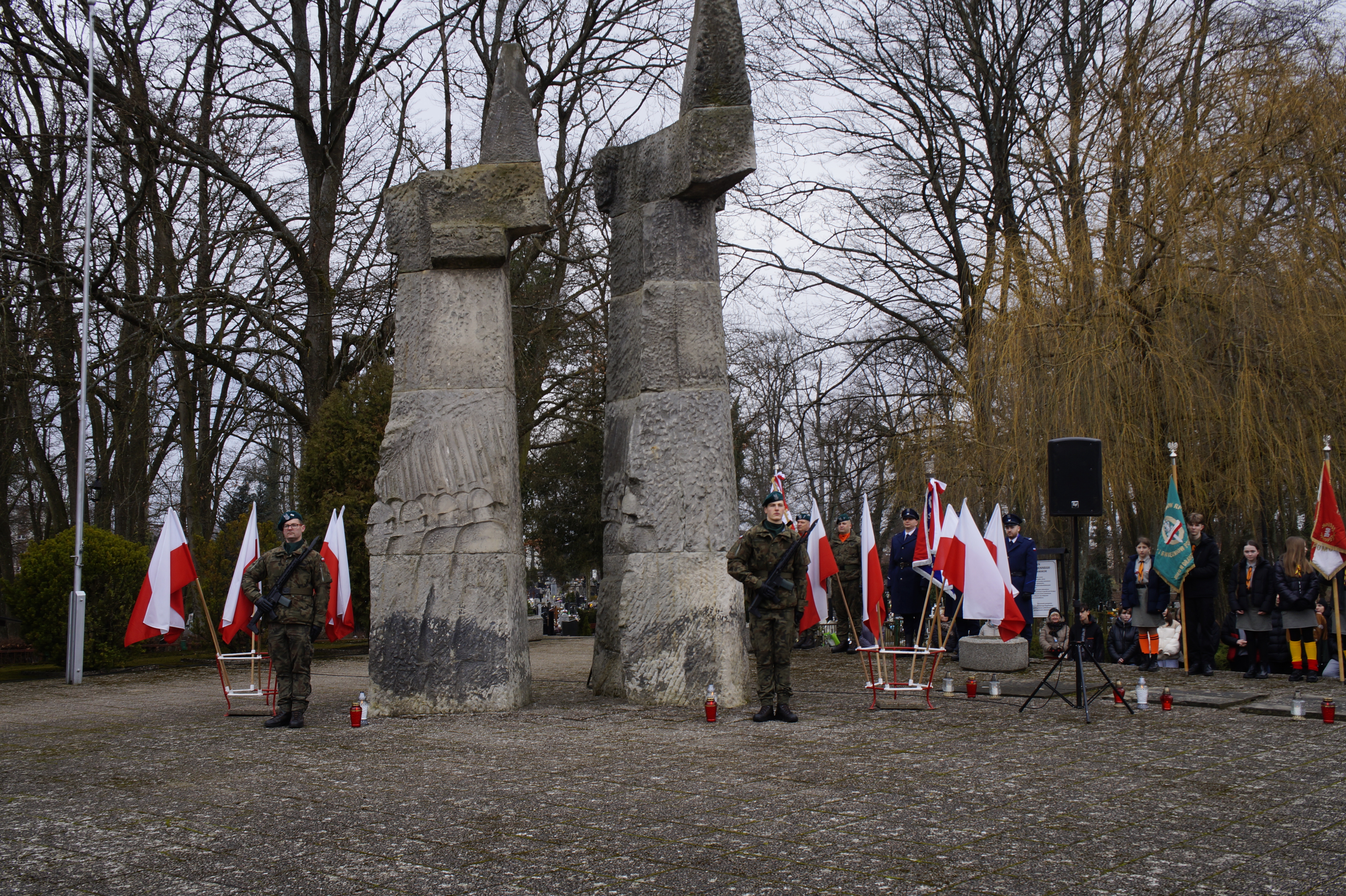 Na zakończenie uroczystości zgromadzeni goście i mieszkańcy złożyli wiązanki pod pomnikiem poległych żołnierzy. Dodatkowo, na grobach żołnierzy zapalano symbolicznie biało-czerwone znicze, co stanowiło wzruszający hołd dla tych, którzy poświęcili swoje życie w walce o wolność kraju.
