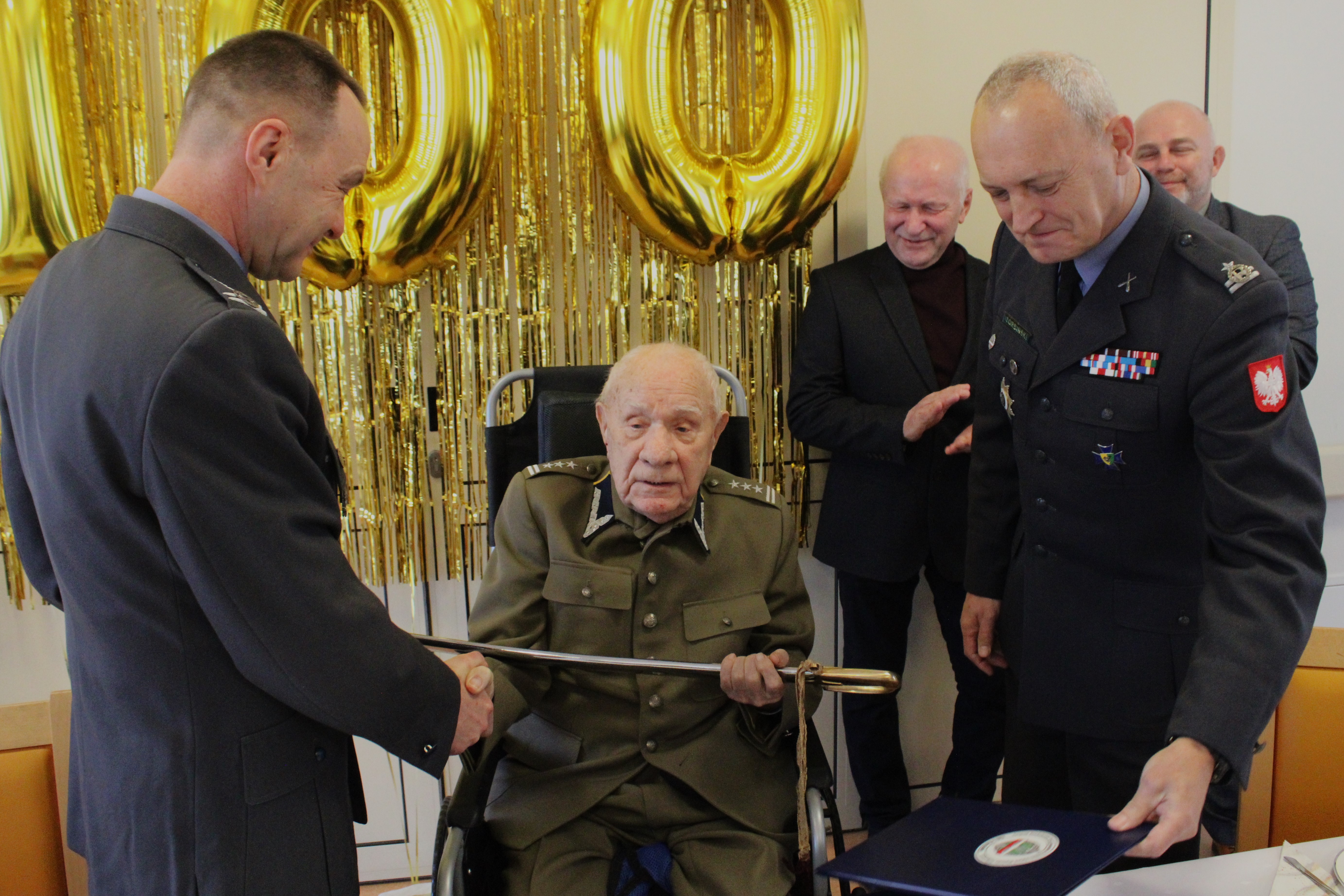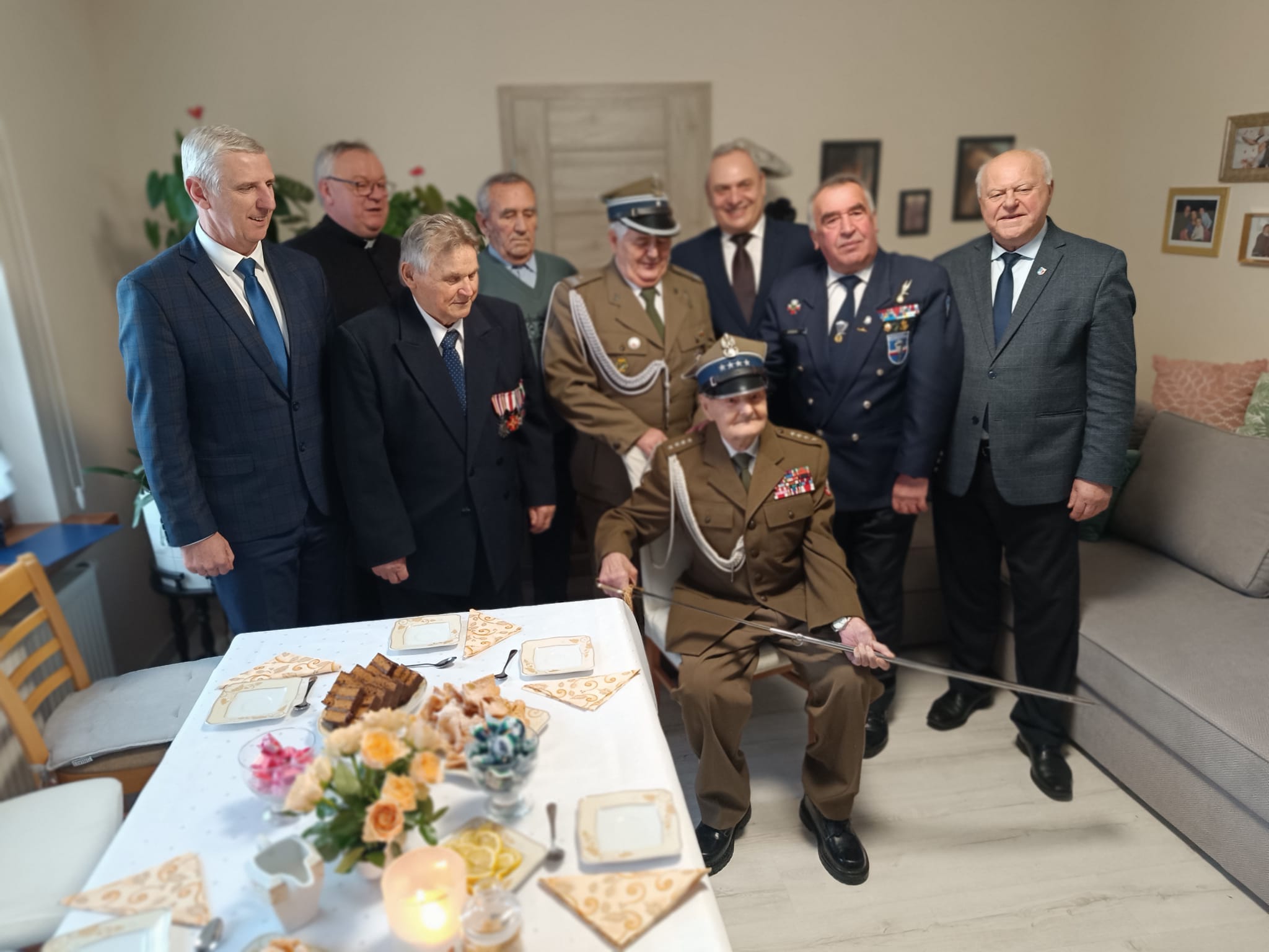Z tej okazji odwiedziła zacnego jubilata delegacja ZZW ZKRPiBWP, aby wręczyć pamiątkową, oficerską szablę z Zarządu Głównego ZKRPiBWP. O zacnym weteranie pamiętali również przedstawiciele Zachodniopomorskiego Urzędu Wojewódzkiego w Szczecinie oraz Urzędu Marszałkowskiego. Nie zabrakło również delegacji koła ZKRPiBWP w Kamieniu Pomorskim oraz Związku Polskich Spadochroniarzy z Dziwnowa.