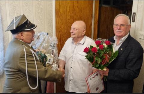 W miłej atmosferze Prezes Koła Drzetowo - kpt. Jan Kubik udekorował Pana Franciszka Związkową Odznaką Jubileuszową „Setna Rocznica Bitwy Warszawskiej”, po czym wysłuchano przejmujących wspomnień Szanownego Jubilata.